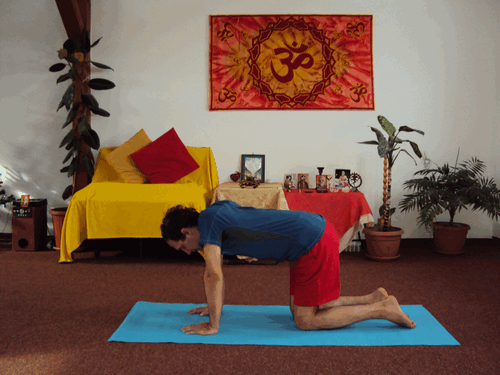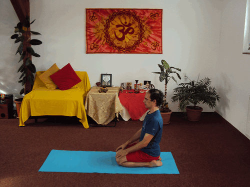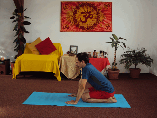 Poziţia de pornire este Vajrāsana (Postura Trăznetului) în care veţi urmări să vă relaxaţi cât mai bine şi totodată să aveţi o statică verticală cât mai corectă. Pentru aceasta veţi îndrepta cât mai bine coloana vertebrală urmărind ca greutatea corpului să se proiecteze pe şezut fără ca să fie astfel nevoie de un efort suplimentar pentru a menţine corpul în această poziţie. Este important să fie relaxate cât mai bine articulaţiile şoldurilor şi spatele. În continuare, folosind respiraţia vom realiza un proces de “întindere” a coloanei vertebrale. Pentru aceasta vom păstra centura abdominală contractată atunci când inspirăm, creând astfel o presiune intra-abdominală care se va difuza pe verticală “trăgând” astfel de coloana vertebrală. Această acţiune va realiza o relaxare la nivelul vertebrelor care vă va permite să realizaţi după aceea mult mai uşor această postură.
