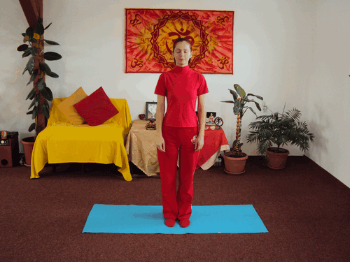 Această postură se execută cu ochii deschişi. Privirea va fi orientată într-un uşor strabism convergent. Fixăm un punct exterior, plasat în faţa noastră aproximativ la înălţimea mijlocului frunţii, central. În timpul execuţiei posturii, spatele va fi menţinut drept, în poziţie verticală.