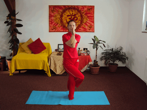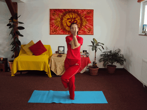 Se repetă apoi execuţia posturii absolut simetric; stând pe piciorul drept şi răsucind piciorul stâng în jurul piciorului drept, iar braţul stâng în jurul braţului drept.