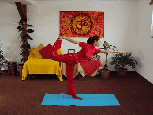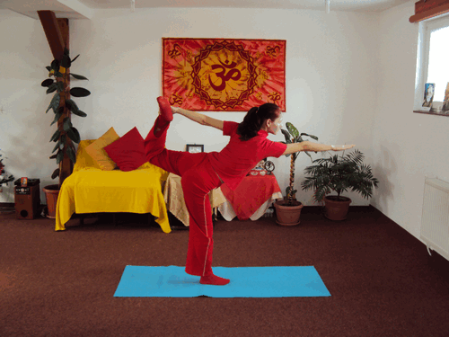 Apoi gradat vă aplecaţi în faţă menţinându-vă cât mai bine echilibrul pe piciorul drept care este piciorul pe care ne sprijinim. Ochii sunt deschişi şi privesc înainte, în continuarea braţului întins. Este bine să ţineţi ochii deschişi pentru a avea un echilibru cât mai bun, însă puteţi să îi şi închideţi dacă aveţi încredere că nu vă veţi dezechilibra. În faza finală braţul întins este paralel cu solul, în timp ce braţul şi piciorul stâng sunt arcuite la maxim.