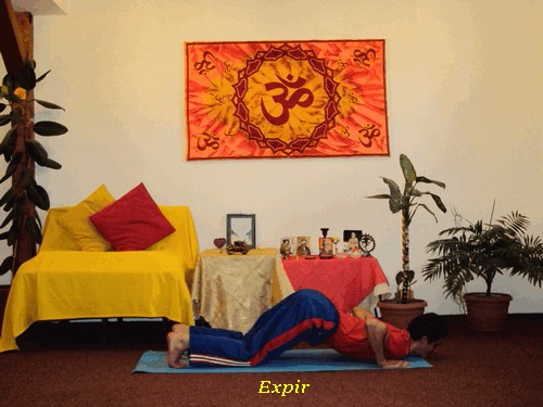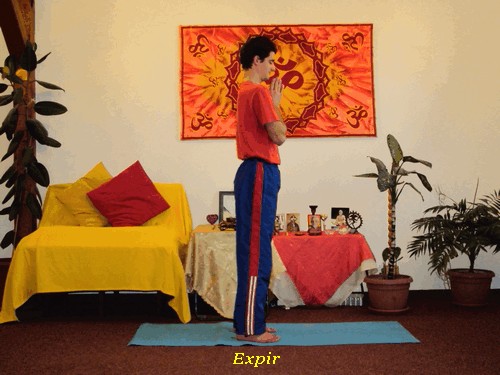 Apoi veţi expira pe gură cât mai profund, presând cu braţele cutia toracică pentru a amplifica eliminarea aerului din plămâni, realizând totodată la sfârşitul expiraţiei o contracţie globală a tuturor muşchilor de la tălpi până în creştet.
