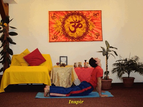Din aṣṭāṅga praṇāmāsana începeţi să inspiraţi şi sprijinindu-vă pe palme şi vârfurile picioarelor împingeţi cât mai mult capul înapoi arcuind la maxim spatele. Este o postură similară cu bhujaṅgāsana (postura cobrei) în care însă greutatea corpului este preluată de palme şi degetele de la picioare, care sunt și singurele părți ale corpului aflate în contact cu solul. La sfârşitul inspiraţiei sunteţi arcuiţi la maxim spre spate.