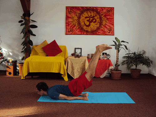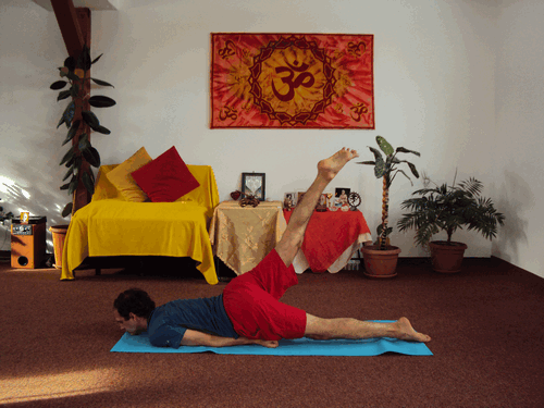 Piciorul trebuie să urce în plan vertical față de locul unde era așezat. Înălțimea la care se ridică piciorul nu este esențială, importantă fiind contracția musculaturii spatelui, pentru a provoca un aflux abundent de sânge oxigenat spre regiunea lombară, completând astfel efectele asupra spatelui obținute prin practica lui bhujangasana.