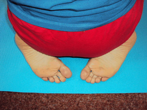 Se depărtează călcâiele de bazin astfel încât să putem așeza fesele la sol; în cazul ideal ele nu ating bazinul.